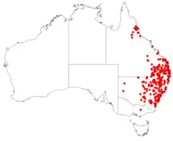 - ↑ a b Fairley, Alan; Moore, Philip (2010). Plantas nativas do distrito de Sydney: De Newcastle a Nowra e oeste até a faixa divisória (3ª ed.). Crows Nest, Nova Gales do Sul: Allen & Unwin. p. 362