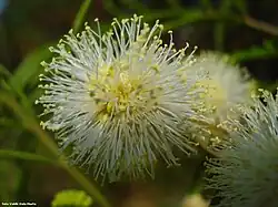 • As folhas são compostas bipinadas (10-25 folíolos) e apresentam uma coloração verde escuro. [3]