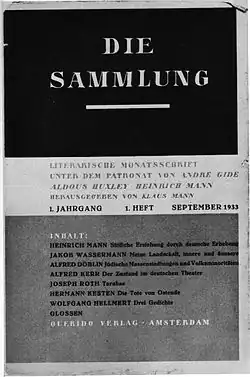 - ↑ Título original:Die Samlung. Contou com algumas contribuições de pensadores e escritores da época: Hemigway, Einstein, Brecht, Cocteau.