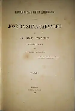 . José da Silva Carvalho e o seu tempo, 3 vols., Imprensa Nacional, Lisboa, 1891-1894, 511 pp., 513 pp. e 211pp.