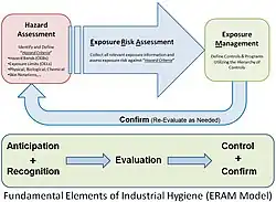 - ↑ a b c Hoover, M.D.; Armstrong, T.; Blodgett, T.; Fleeger, A.K.; Logan, P.W.; McArthur, B.; Middendorf, P.J. (janeiro de 2011). «Confirming our industrial hygiene decision-making framework». AIHA. Synergist. Consultado em 6 de novembro de 2020