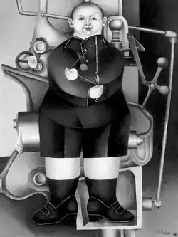 Deleuze e Guattari argumentam que a pintura "Boy with Machine [Menino com Máquina]" (1954), de Richard Lindner, demonstra a tese esquizoanalítica da sobreposição dos investimentos sociais do desejo sobre a família. O quadro "mostra uma criança enorme e túrgida que, assim inserida, faz com que uma de suas pequenas máquinas desejantes funcione em uma enorme máquina social técnica."[21]