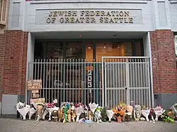 - ↑ Johnson, Tracy (2 de agosto de 2006). «Murder charge in shootings at Jewish Federation» [Acusação de assassinato em tiroteio na Federação Judaica]. SeattlePI. Consultado em 6 de agosto de 2025. Cópia arquivada em 1 de fevereiro de 2013