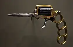 Algumas das gangues utilizavam um tipo incomum de pistola que foi chamada de "revólver apache " ou " pistola apache": um revólver de cartucho de espiga sem cano, um conjunto de soqueiras dobráveis como empunhadura, e uma faca dobrável montada logo abaixo do tambor do revólver para uso como arma branca.