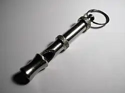 Para os ouvidos humanos, os apitos dos cães emitem apenas um som sibilante.[6] A principal vantagem dos apitos para cães é que eles não produzem um ruído alto e potencialmente irritante para os humanos que um apito normal produziria. Portanto, eles podem ser usados para treinar ou comandar animais sem incomodar as pessoas próximas. Alguns apitos para cães têm controles deslizantes ajustáveis para controle ativo da frequência produzida.