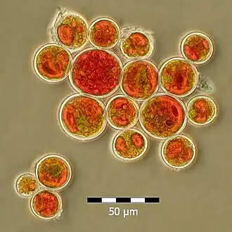 A título de exemplo, em condição de privação de nitrogênio, Haematococcus Pluvialis forma agregados de células que posteriormente diferenciam-se em aplanósporos.[1]