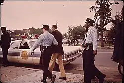 Apesar dessas reformas, as agências policiais eram lideradas por chefes altamente autocráticos e persistia a falta de respeito entre a polícia e a comunidade. Durante a era do profissionalismo policial, as agências de aplicação da lei concentraram-se em lidar com crimes graves e outros delitos sérios, em vez de se concentrarem na prevenção do crime.[57] Após os distúrbios urbanos da década de 1960, a polícia passou a dar mais ênfase às relações com a comunidade e implementou reformas, como o aumento da diversidade nas contratações. O estudo da Patrulha Preventiva de Kansas City, na década de 1970, constatou que a abordagem reativa ao policiamento era ineficaz.[58] O custo do policiamento aumentou rapidamente durante a década de 1960. Em 1951, as cidades americanas gastavam US$ 82 por pessoa com policiamento. Ajustando-se pela inflação, os gastos com a polícia aumentaram mais de 300% até 2016, chegando a US$ 286 por pessoa.[59]