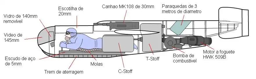 As forças G que estavam previstas podiam ser suportadas pelo design da aeronave, porém para um piloto numa posição sentado dentro da cabine de pilotagem, seriam demasiados fortes. Os técnicos de design tentaram contornar este problema colocando o piloto deitado dentro da aeronave, numa posição ventral, para aliviar a força exercida nele; o que ao mesmo tempo faria com que a fuselagem pudesse ser mais esguia do que seria necessário para incorporar um piloto sentado. Um design mais esguio fazia também com que a aeronave tivesse mais chance de não ser atingida pelo fogo defensivo dos bombardeiros, e os alemães exploraram isso ao máximo. De acordo com os dados específicos da aeronave,[4] o caça seria concebido para voar próximo das formações dos bombardeiros inimigos e abrir fogo à queima-roupa.[4]