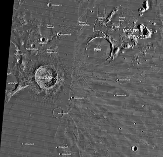 - ↑ a b c «Aristarchus Region: Multispectral Mosaic of the Aristarchus Crater and Plateau». Lunar and Planetary Institute. Consultado em 8 de agosto de 2006
