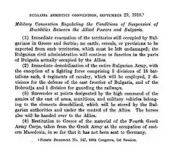 - (1919) "Bulgaria Armistice Convention, September 29th, 1918". The American Journal of International Law Vol. 13 No.4 Supplement: Official Documents, 402-404.