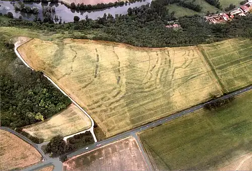 Conjunto complexo de fossos de defesa de uma fortificação que domina a Charente. Estes conjuntos de portas e valas com defletores complexos tinham a intenção de proteger uma área de acolhimento de uma população de recém-assentados caçadores-coletores, graças ao clima regional e aos cereais selvagens.