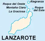 Na fotografia abaixo, tirada a partir de Lanzarote, em primeiro plano a ilha Graciosa e imediatamente atrás Montaña Clara, vendo-se ao fundo a ilha de Alegranza:
