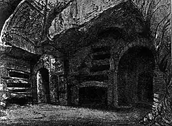 As catacumbas eram locais subterrâneos que, após a morte de Cristo, os primeiros cristãos utilizavam para enterrar os seus mortos, embora também existissem galerias utilizadas por seguidores do judaísmo e do paganismo. Localizavam-se fora das muralhas da cidade, uma vez que a lei romana não permitia sepultamentos dentro da área urbana por razões religiosas e de higiene.[8]