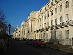 Bons exemplos de propriedades Regency dominam Brighton e Hove em East Sussex ; em particular em Kemp Town e Brunswick (Hove) .[8]