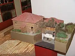 Os primórdios da arquitetura na Albânia remontam à era neolítica, com a descoberta de habitações pré-históricas em Dunavec e Maliq.[9] Elas eram construídas em uma plataforma de madeira que ficava em estacas presas verticalmente no solo.[9] Habitações pré-históricas na Albânia consistem em três tipos, tais como casas fechadas completamente no solo ou meio subterrâneas, ambas encontradas em Cakran perto de Fier e casas construídas acima do solo.