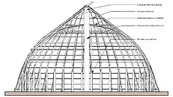 As malocas são dotadas de apoios verticais duplos que suportam vigas paralelas. Sobre a peça que une os dois pilares, uma espécie de pontilhão vertical apoia a cumeeira.