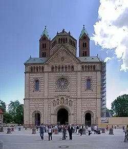 Fachada neorromânica da Catedral de Speyer, Alemanha.