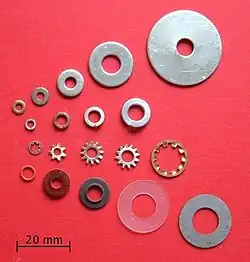 Arruelas também são importantes pare evitar a corrosão galvânica, particularmente isolando parafusos de aço de superfícies de alumínio.