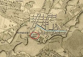 - ↑ Heinrich Ludwig Manger: Baugeschichte von Potsdam, Friedrich Nicolai, Berlin–Stettin 1789, Bd. 2, S. 444