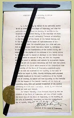 - ↑ Em 1868, com relação à Décima Quarta Emenda, em 1870, com relação à Décima Quinta Emenda, e em 1992, com relação à Vigésima Sétima Emenda.