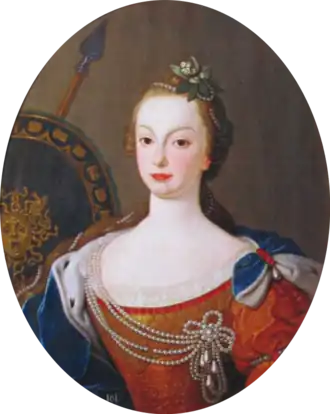 O Retrato de D. Maria Ana de Bragança, tendo ela na época dezassete anos (1736-1813), é adornada com fita azul na cabeça formando laçadas.[1]