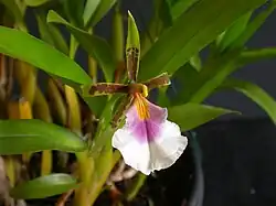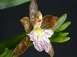 Aspasia é um gênero intermediário de Brassia e Miltonia, com o qual vegetativamente se parece mais, e do qual se distingue por apresentar o labelo parcialmente soldado à coluna.