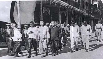 Milhares de pessoas, rotuladas como simpatizantes comunistas e espiãs, foram mortas pelo governo de Chiang Kai-shek durante o Terror Branco (Taiwan), em Taiwan, uma repressão violenta de dissidentes políticos após o Incidente de 28 de Fevereiro de 1947.[46] Protestos irromperam em 27 February após um altercado entre agentes do Tobacco Monopoly Bureau e um residente de Taipei, com manifestantes exigindo reformas democráticas e o fim da corrupção. O regime do Kuomintang respondeu com violência para reprimir a revolta. Nos dias seguintes, a repressão liderada pelo governo matou várias milhares de pessoas, com estimativas situando o número entre 10.000 e 30.000 ou até mais.[47][48] De 1947 a 1987, cerca de 140.000 taiwaneses foram presos, dos quais aproximadamente 3.000 a 4.000 foram executados por sua suposta oposição ao regime do Kuomintang.[49]