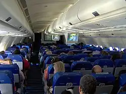 Foi relatado em 2016 que a distância média entre as fileiras de assentos (pitch) havia diminuído para 79 centímetros (31 pol), de mais de 89 centímetros (35 pol), enquanto a largura média do assento havia diminuído para 43 centímetros (17 pol) de 46 centímetros (18 polegadas) nas duas décadas anteriores.[11]