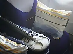 Geralmente, cada posição individual do banco, exceto os últimos na parte traseira da cabine, tem um pequeno conjunto de controles auxiliares embutidos no encosto do banco para o passageiro diretamente atrás do banco. O assento em si normalmente contém uma pequena mesa extensível dobrável, que deve ser dobrada durante a decolagem e o pouso, e, na maioria das aeronaves internacionais de fuselagem larga, uma tela de vídeo LCD diretamente acima da mesa da bandeja (as aeronaves anteriores tinham uma única grande tela de projeção na frente de cada cabine). Diretamente acima do assento; no teto da cabine, está um console para a unidade de atendimento ao passageiro. Os controles no console PSU podem incluir: