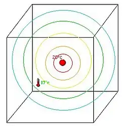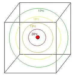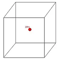 Deseja-se conhecer a temperatura numa peça que dispõe de uma fonte de calor pontual de 20°C.