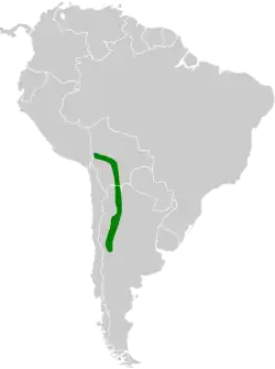 Pode ser encontrada nos seguintes países: Argentina, Bolívia, Chile e Peru.[1]