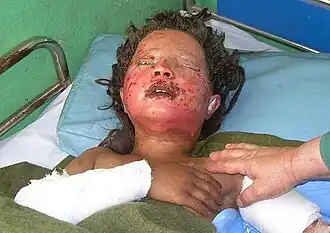 | Desfecho | estimativa de 86-145 pessoas mortas, na sua maioria crianças |
