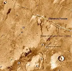 - ↑ Jaeger, W. et al. 2010. Emplacement of the youngest flood lava on Mars: A short, turbulent story. Icarus: 205. 230-243.