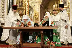 O texto da "Lei" foi desenvolvido em 2004-2006 durante oito reuniões conjuntas da comissão do Patriarcado de Moscou para o diálogo com a Igreja Russa no Exterior e a comissão da Igreja Russa no Exterior para negociações com o Patriarcado de Moscou. Em 17 de maio de 2007, na Catedral de Cristo Salvador em Moscou, o “Ato” foi solenemente assinado pelo Patriarca Aleixo II de Moscou e Toda a Rússia e Metropolita Lauro (Škurla), Primeiro Hierarca da ROCOR.[2]