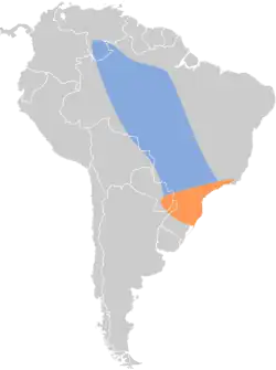 Pode ser encontrada nos seguintes países: Argentina, Bolívia, Brasil, Paraguai e Venezuela.[1]