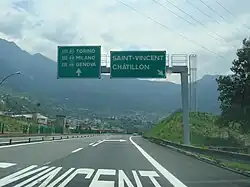 - ↑ Saída em direção ao Túnel do Monte Branco e entrada só em direção a Turim
