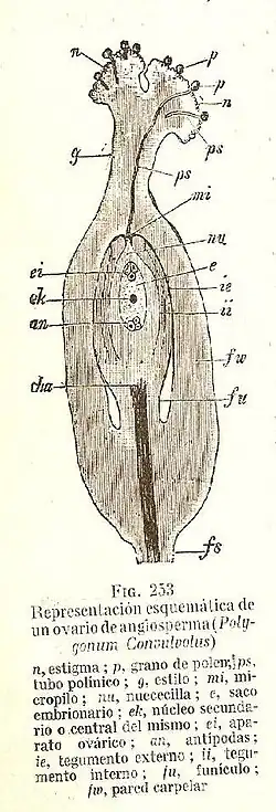 - ↑ Boavida LC, Vieira AM, Becker JD, Feijó JA. (2005). «Gametophyte interaction and sexual reproduction: how plants make a zygote». Int. J. Dev. Biol. 49: 615-632. doi: 10.1387/ijdb.052023lb