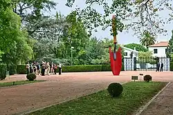 - Monumento ao Esforço Colonizador Português, no topo oeste, mais precisamente na Praça do Império. Foi construído para a Exposição Colonial Portuguesa, inaugurada em junho de 1934 no Palácio de Cristal, projetado por José Sousa Caldas e Alberto Ponce de Castro[8]. Compõe-se de um obelisco encimado com as armas nacionais; na base, seis esculturas estilizadas simbolizam as figuras a quem se deve o esforço colonizador: a mulher, o militar, o missionário, o comerciante, o agricultor e o médico.