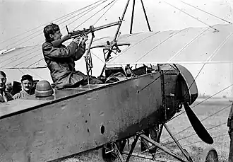 A primeira utilização do avião no esforço de guerra foi na tarefa de reconhecimento aéreo para a artilharia em substituíção aos limitados balões. Nos primeiros dias da guerra, pilotos e observadores disparavam revólveres e espingardas contra as aeronaves inimigas, com pouco ou nenhum efeito; ficou claro que a metralhadora seria uma solução bem mais eficaz.[12]