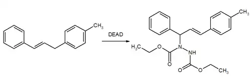 O grupo azo em DEAD é um aceptor de Michael. na presença de um catalisador de cobre(II), DEAD auxilia a conversão de β-ceto ésteres aos correspondentes derivados de hidrazina.[20]