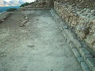 Apesar do sítio ter uma longa história de uso — foi povoado no Neolítico Final, Idade do Bronze e Idade do Ferro Primitiva — os vestígios mais visíveis são as casas e edifícios comunais do Período Arcaico (600–500 a.C.) Os edifícios públicos deste último período estão aglomerados perto do cume, nas encostas ocidental e sul da acrópole sul, e cobrem uma área total de mais de 0,6 hectares. Todos revelaram sinais de destruição e abandono no início do século V a.C. Esta destruição marca o fim da vida da cidade. A reconstrução do Período Arcaico ampliou o assentamento até ao seu tamanho máximo (c. 15 ha), criou uma zona de edifícios comunais na parte alta da encosta ocidental da acrópole sul e formalizou aquilo que pode ser chamada arquitetura civil — geralmente espaços comunais supra-domésticos que acomodavam diversas atividades possíveis e configurações de grupos.