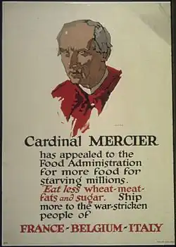 A Bélgica enfrentava uma crise alimentar e uma resposta internacional foi organizada por um engenheiro americano radicado em Londres, Herbert Hoover, a pedido de Émile Francqui, cujo Comité National de Secours et d'Alimentation (CNSA) percebeu que a única maneira de evitar uma fome na Bélgica era através de importações do exterior.[20] A Comissão de Socorro na Bélgica (CRB) de Hoover recebeu a permissão tanto da Alemanha quanto dos Aliados para suas atividades.[21] Como presidente da CRB, Hoover trabalhou com Francqui para arrecadar fundos e apoio no exterior, transportando alimentos e ajuda para a Bélgica, que eram então distribuídos pela CNSA. A CRB comprou e importou milhões de toneladas de alimentos para a CN distribuir e supervisionou a CN para garantir que os alemães não se apropriassem dos alimentos. A CRB tornou-se uma verdadeira república independente de ajuda humanitária, com sua própria bandeira, marinha, fábricas, moinhos e ferrovias. Doações privadas e subsídios governamentais (78%) forneciam um orçamento de US$ 11 milhões por mês.[22]