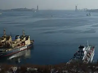 O estreito tem 9 km de comprimento e a sua largura mínima é de 800 m. Em 2012 foi construída a ponte da ilha Russki, uma ponte estaiada com 3100 m de comprimento, que cruza o estreito e liga a ilha Russki à cidade de Vladivostoque, no continente asiático. É a mais longa ponte estaiada do mundo.
