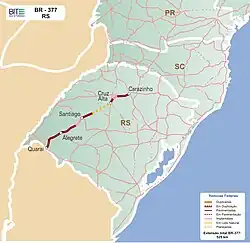 - ↑ DNIT Notícias. "Obras de manutenção na BR-377/RS visam melhorar segurança no escoamento da safra". 2025.