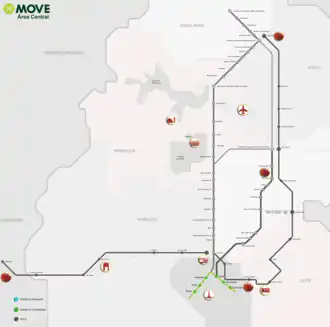 A rede de transportes do MOVE opera atualmente com 23,1 km de corredores exclusivos, ao longo das avenidas Antônio Carlos, Cristiano Machado, Paraná, Pedro I, Santos Dumont e Vilarinho,[52] que compõem os corredores Antônio Carlos, Cristiano Machado e Área Central. 56 estações de transferência encontram-se em operação,[53] sendo 19 com operação exclusiva da rede metropolitana, 8 com operação exclusiva da rede municipal e 29 com operação de ambas as instâncias.[53] Outras 7 estações de integração fazem parte do serviço, atendendo as regionais administrativas Nordeste, Norte, Pampulha e Venda Nova, em Belo Horizonte, além de 14 dos 34 municípios da região metropolitana.[52][53] Diariamente, trafegam cerca de 500 mil passageiros no sistema, quando somadas as demandas municipal e intermunicipal.[54]