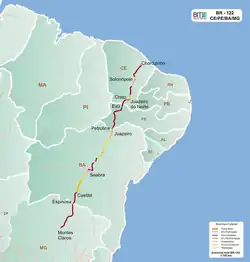 No estado do Ceará, a BR-122 possui trechos superpostos a rodovias estaduais: