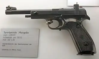 ![]() Pistola esportiva Margolin MCM no museu de armas em Suhl. | |