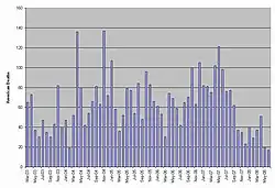 | 2005 | 1222 | 1297 | 905 | 1145 | 1396 | 1347 | 1536 | 2352 | 1444 | 1311 | 1487 | 1141 | 16,583 |