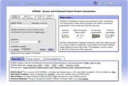 - ↑ Szklarczyk D; Franceschini A; Kuhn M; et al. (Janeiro de 2011). «The STRING database in 2011: functional interaction networks of proteins, globally integrated and scored». Nucleic Acids Res. 39 (Database issue): D561–8. PMC 3013807