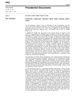 Em 9 de junho de 2021, o governo Biden emitiu a ordem executiva (OE) 14034, "Protegendo dados confidenciais dos americanos de adversários estrangeiros", anulando três ordens executivas assinadas por Donald Trump: 13942, 13943 e 13971. Apesar de revogar estas OEs, a 14304 da administração Biden apelou a outras agências federais para que continuassem uma ampla revisão de aplicativos detidos por estrangeiros, destinados a informar continuamente o presidente sobre o risco que as aplicações representam para os dados pessoais e para a segurança nacional.[7] A Casa Branca afirmou que "o governo Biden está empenhada em promover uma Internet aberta, interoperável, fiável e segura; proteger os direitos humanos online e offline; e apoiar uma economia digital global vibrante".[8]